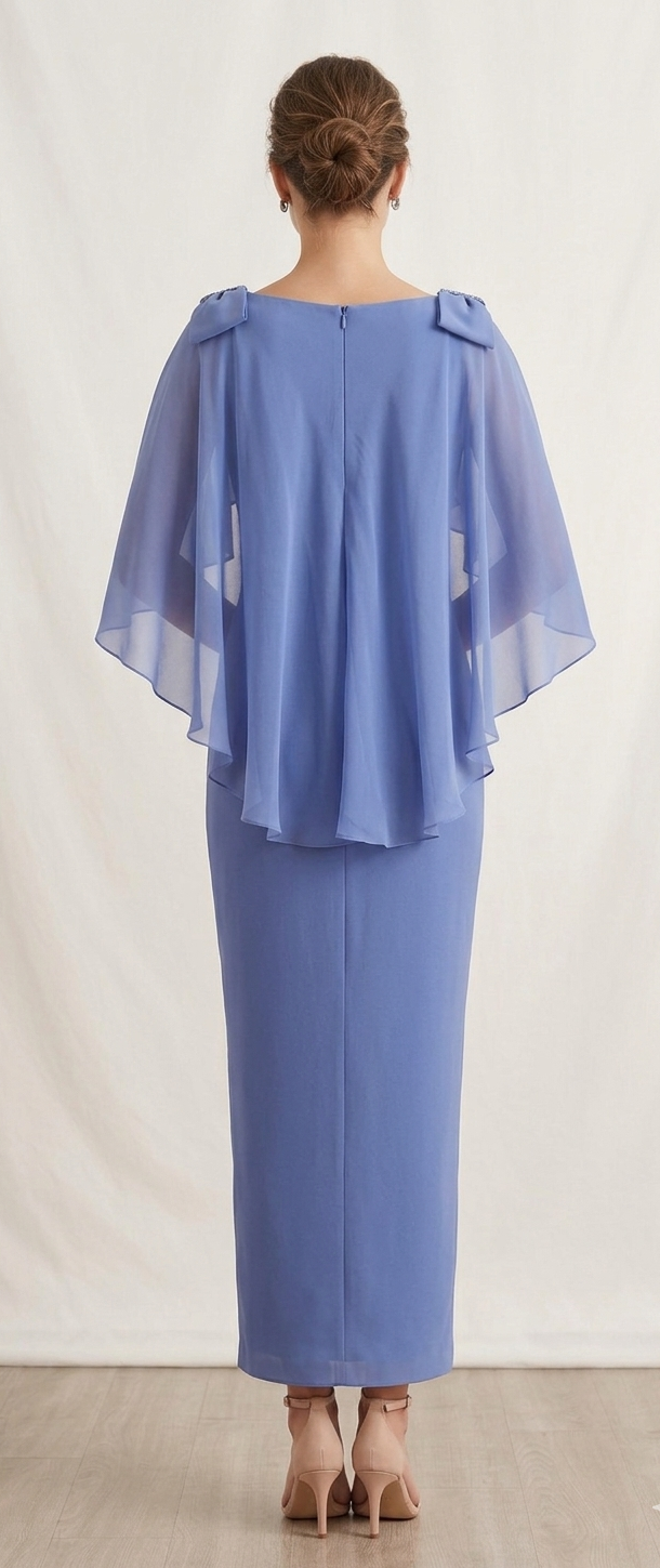 Giro manica, applicazione di mantellina chiffon removibile dello stesso colore dell’abito.
